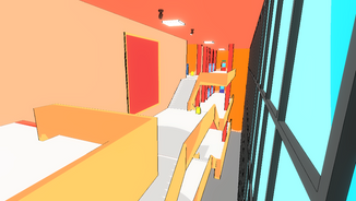 In the actual gameplay, player will see a level in black/white tone and can see the real color of that room by look through a bullet impact. Like painting on a paper.